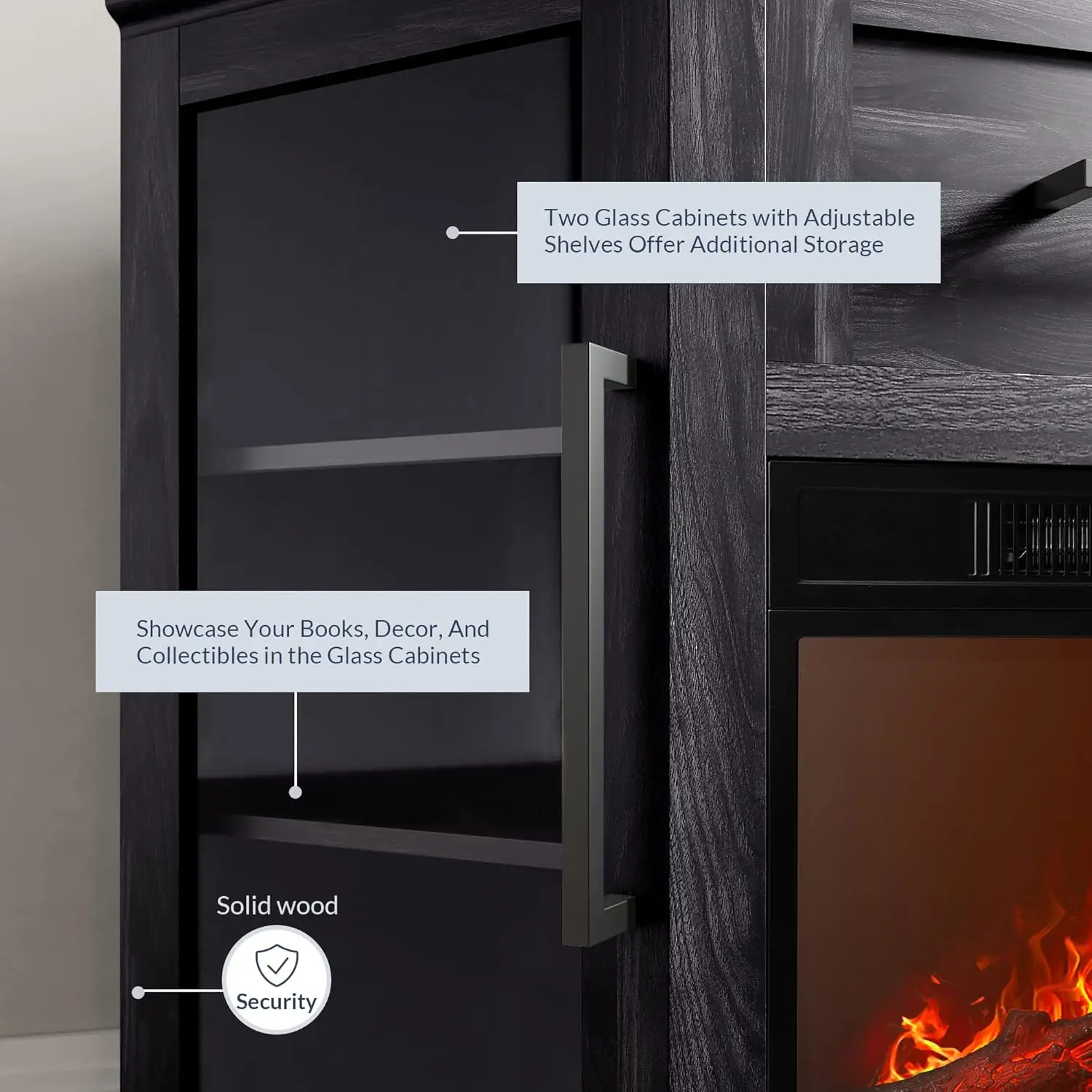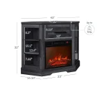 [ELECTRIC FIREPLACE INCLUDED] This fireplace corner TV stand comes with an in-built 120 V, 1400W fireplace that can warm up rooms up to 400 square feet. Overall dimensions of the fireplace are 18″L x 5.07″W x 17.17″H.
