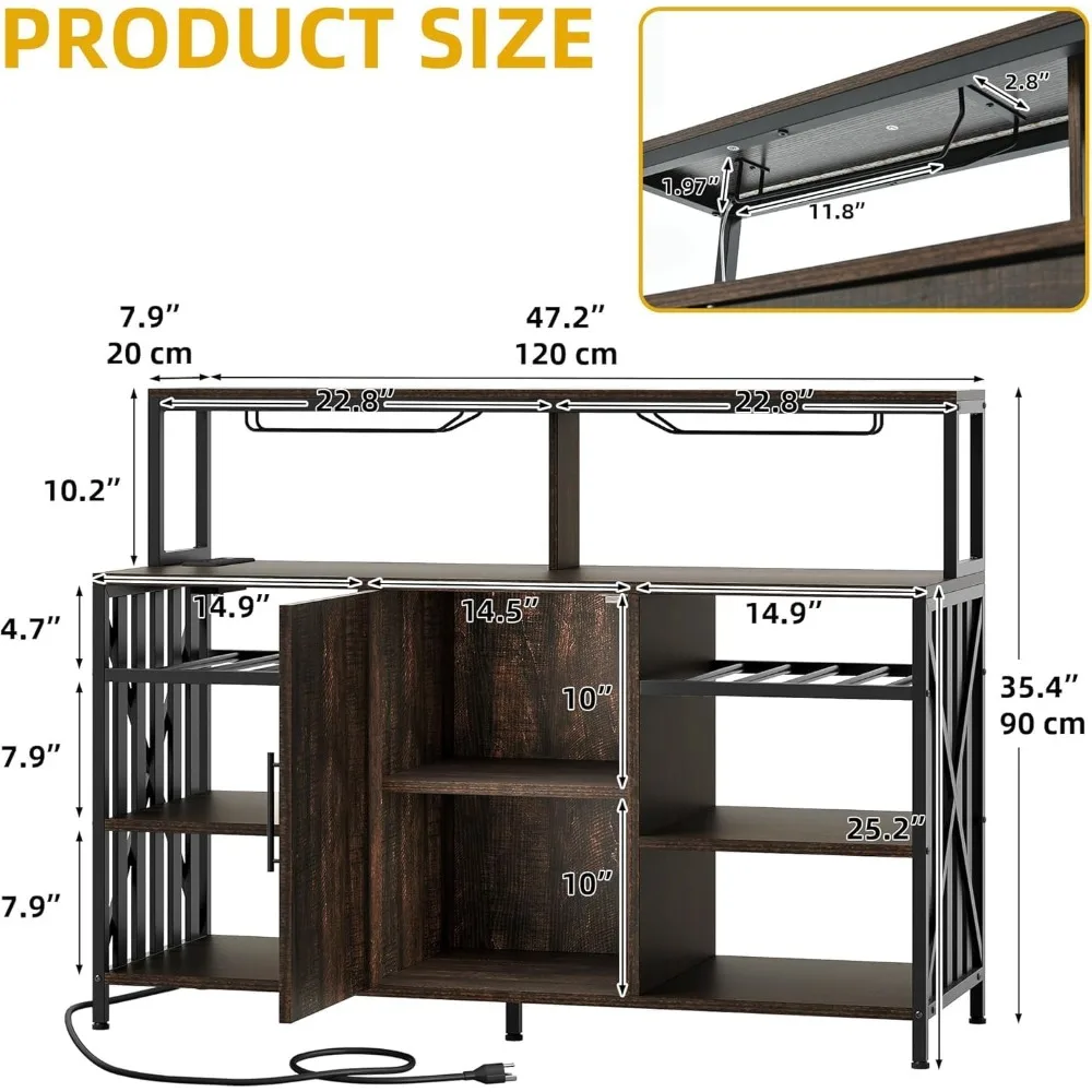 - Large Storage: Maximize this bar cabinet with storage for any need – wine display, spirit collection, or kitchen organization. The adjustable interior shelf behind cabinet doors allows you to tailor space for your items
