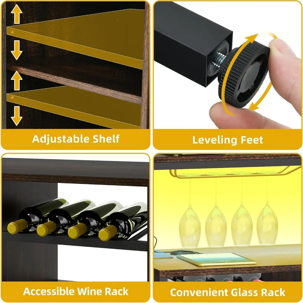 - Smart LED Lighting: Elevate your bar cabinet experience with 7-color mood lighting and integrated power (2 AC outlets + 2 USB ports + 6.56ft cord). This wine cabinet with LED lights sets the great atmosphere for gatherings while keeping devices charged